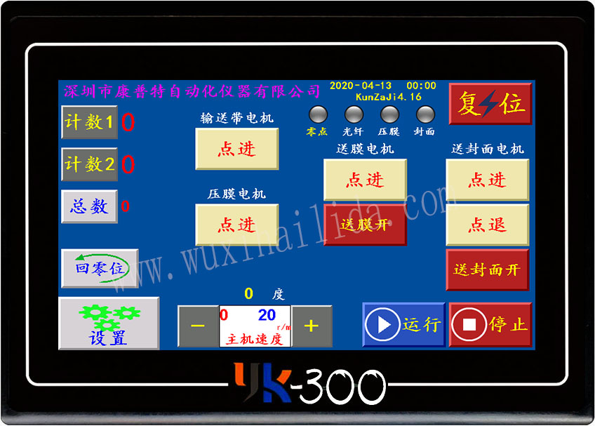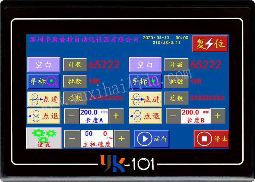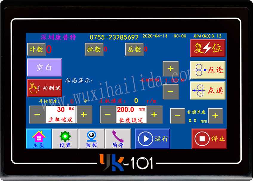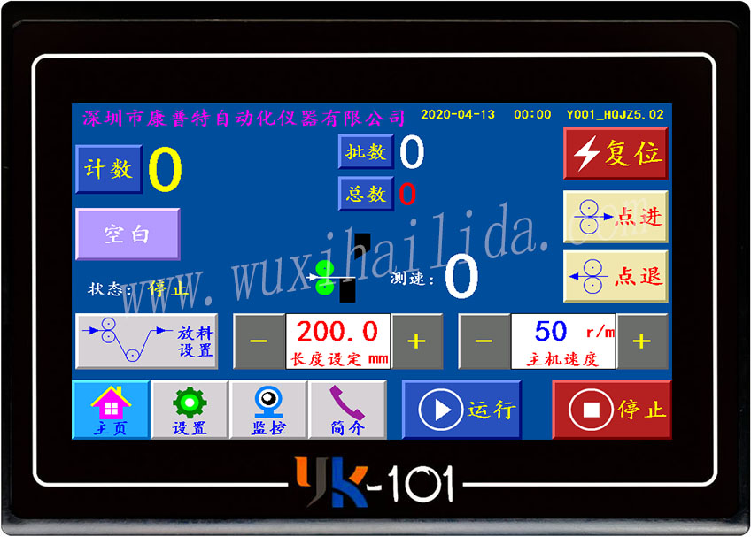 无锡海利达自动化仪器厂 YK-101触摸屏控制系统 使用说明书(制袋机极限版) 一、概述 YK-101控