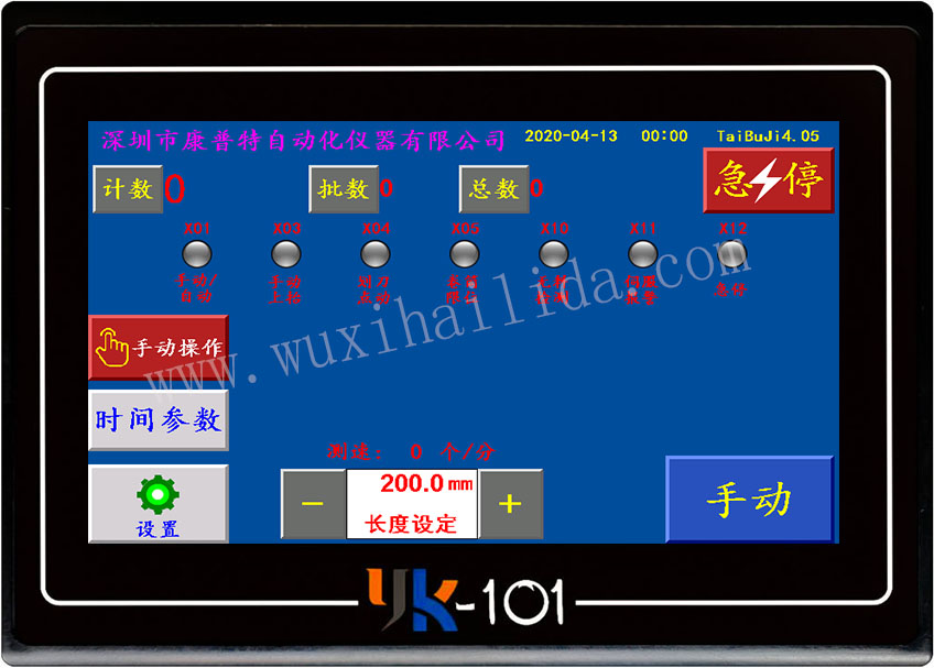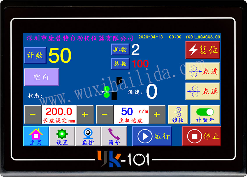 无锡海利达自动化仪器厂 YK-101触摸屏控制系统 使用说明书(台布折叠机) 一、概述 YK-101控制系统